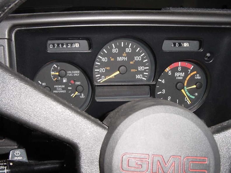 - It has a turbo gauge, tach, 140mph speedo, and all the other things.